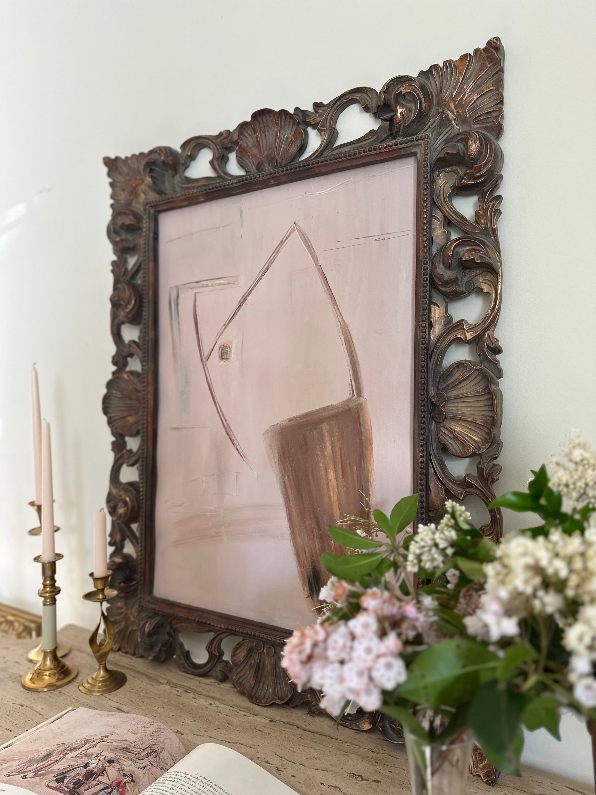 Framed in vintage wooden frame from France.