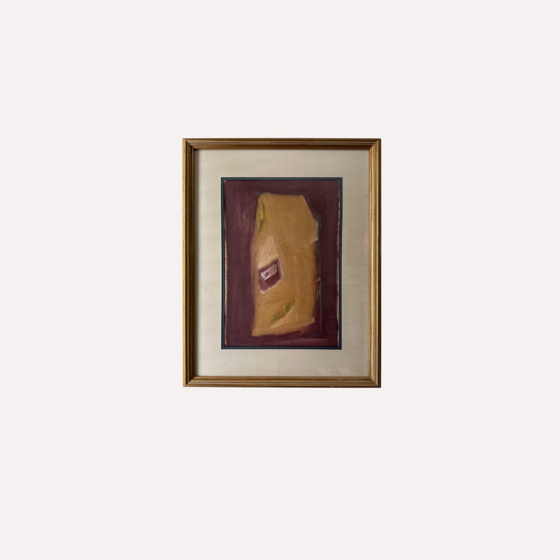 Framed in vintage wood + gold frame with original mat and blue detail.