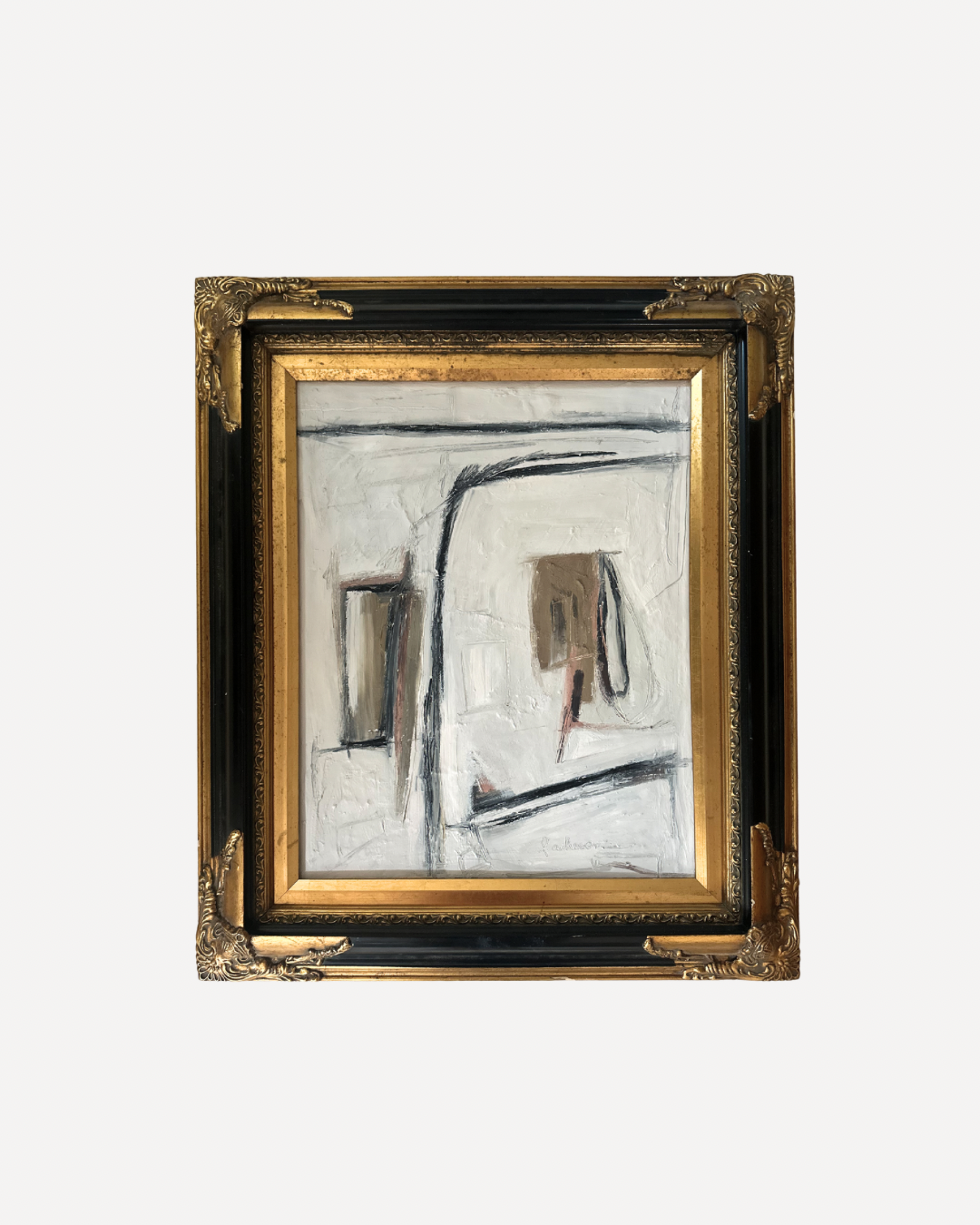 Framed in vintage black + gold.